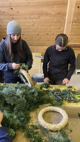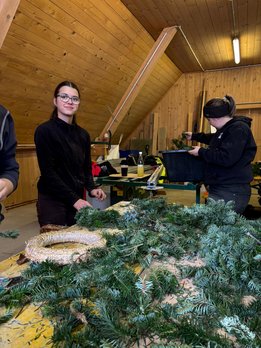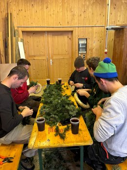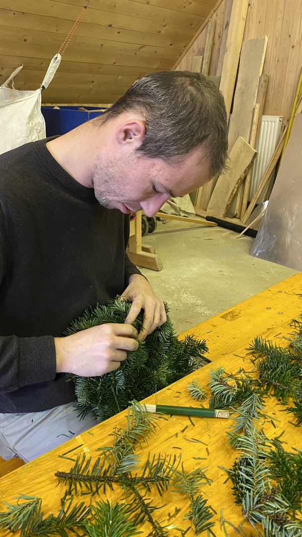 Gemeinsam banden wir rund 40 Adventskränze, welche wir am Sonntag nach dem Gottesdienst gegen eine freiwillige Spende verkauften. Den Erlös werden wir spenden.