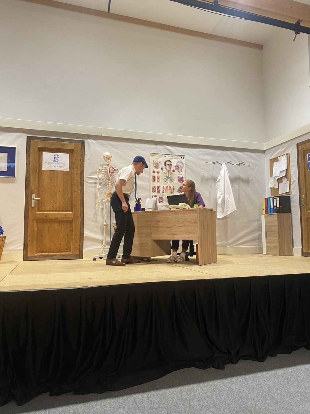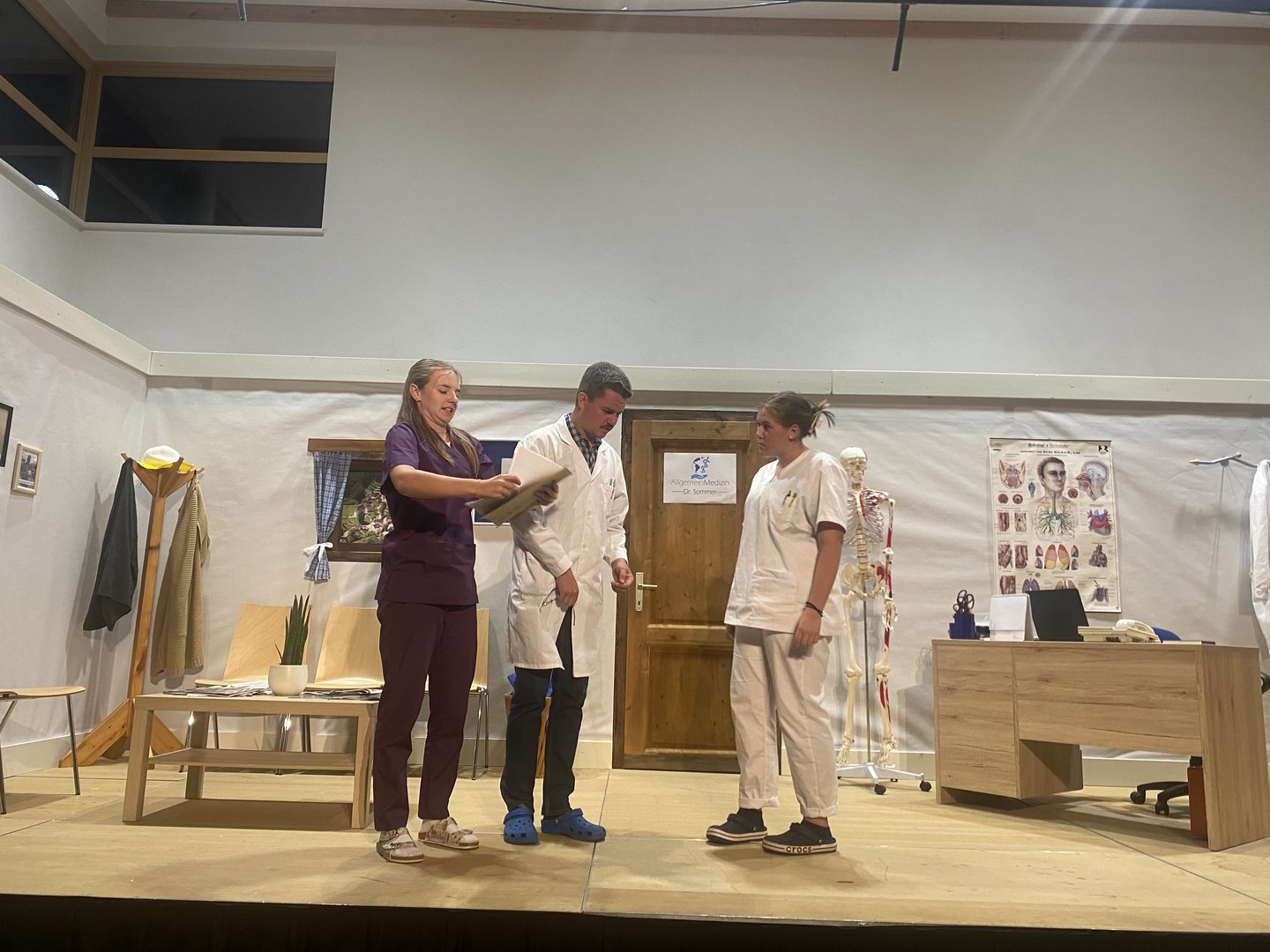 Unsere Aufführungen des Stücks "Letzte Rettung: Erste Hilfe" waren ein großer Erfolg! Das Theaterstück von Kerstin Schmid und Gerhard Waldmüller zog unser Publikum in den Bann und sorgte für herzhaftes Gelächter. Unsere talentierten Darstellerinnen und Darsteller haben die Charaktere mit Leidenschaft zum Leben erweckt und das Publikum von der ersten Minute an begeistert.