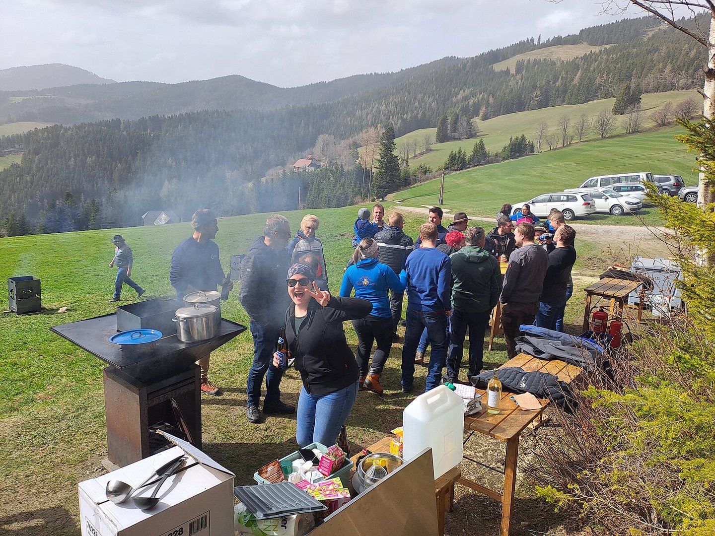 Am Osterwochenende war wieder viel los in Gasen. Am Samstag begannen wir mit den Aufbauarbeiten für unser diesjähriges Osterschießen beim Höhlofaeck. Mit vielen tatkräftigen Helfern waren die Vorbereitungen schnell erledigt, und gemeinsam stärkten wir uns mit einer leckeren Eierspeise.