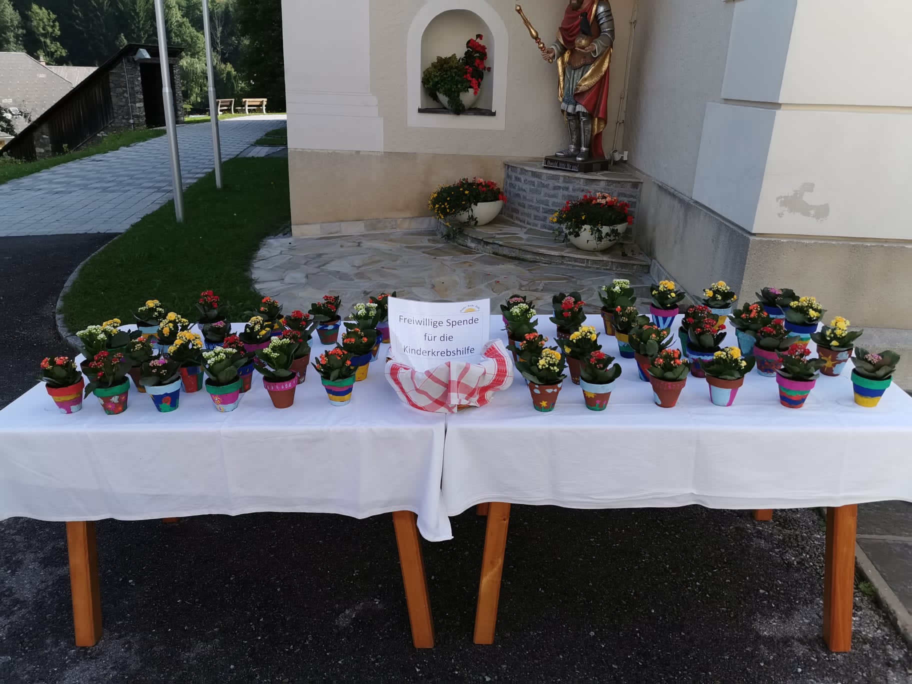 Für uns Lj-Mitglieder war das TatOrt Projekt aber noch nicht vorbei, einige Tage später haben wir in den bemalten Blumentöpfen noch Blumen gesetzt. Diese konnten am 15.08.2021 nach der Kirche gegen eine freiwillige Spende erstanden werden. Dank diesem Projekt konnten wir €435,50 für die Kinder Krebshilfe Steiermark sammeln!