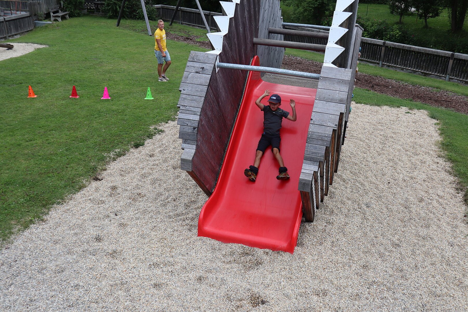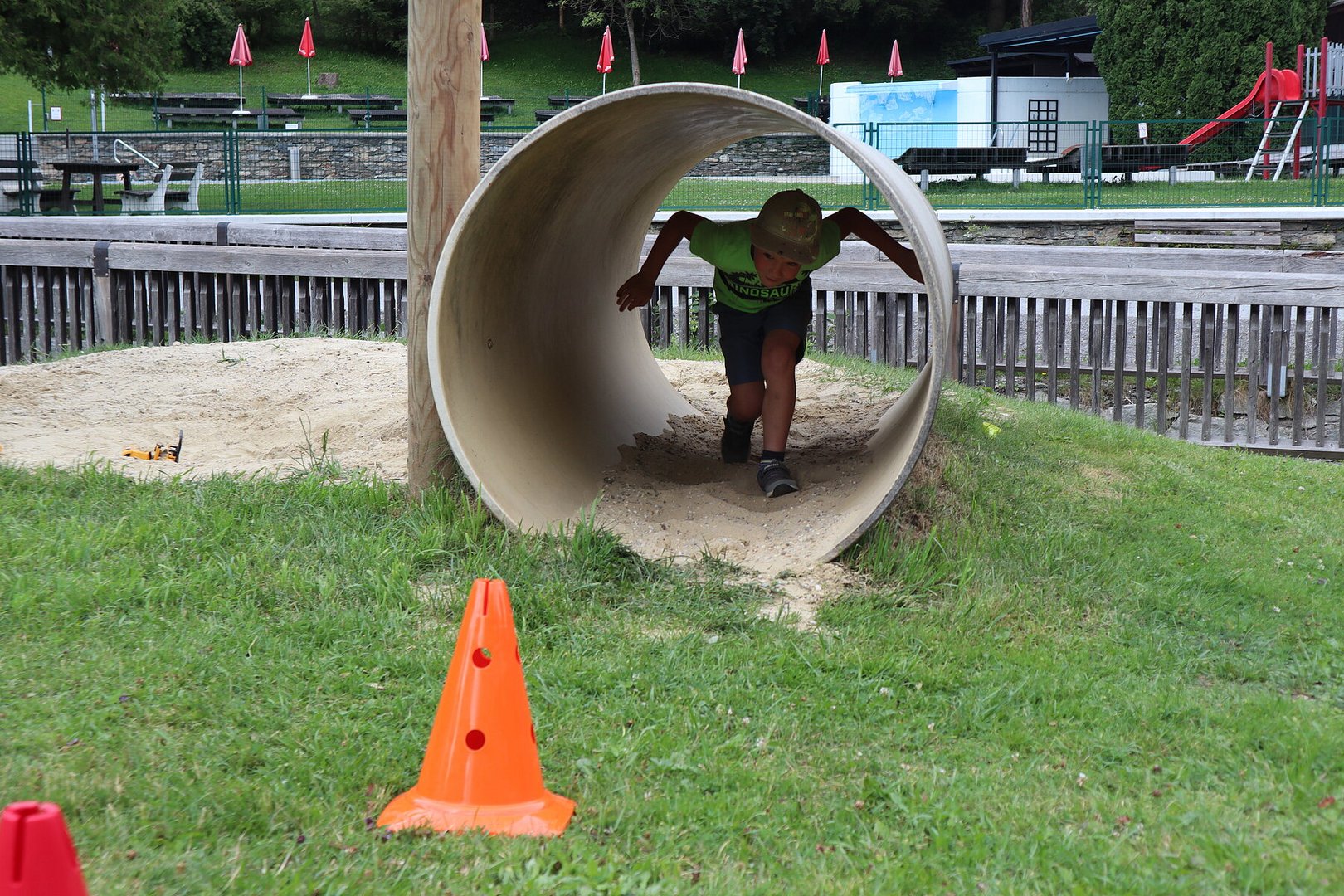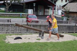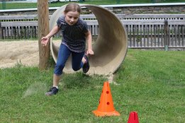 Die 2. Station fand am Spielplatz statt, wo die Kinder einen Geschicklichkeitslauf bewältigen mussten