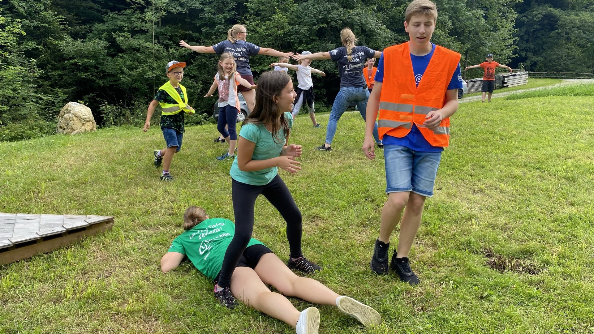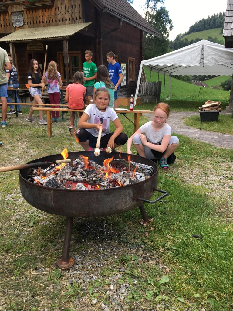 Dr. Ritter sein. Station 3: Kinder Erste-Hilfe Kurs. Unter der Anleitung der Lj-Mitglieder lernten die Kinder das Anlegen von einem Druckverband. Außerdem konnten sie zeigen wie gut sie die Notrufnummern der Feuerwehr, Polizei und Rettung wussten. Weiter ging es dann mit Station 4 unserer Schlussstation. Bei der Schreihofer-Mühle konnten die Kinder ihre Kreativität, beim Bemalen der Blumentöpfe, freien Lauf lassen. Nach der Siegerehrung ging der richtige Spaß erst los, „Versteinern“ und „Drache-Fangen“ mit der gesamten Landjugend. Im Anschluss konnten die Kinder noch Würstel, Braunschweiger und Stecker’l Brot grillen bevor die dann von ihren Eltern abgeholt wurden.
