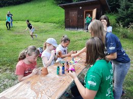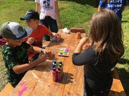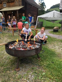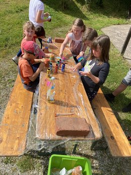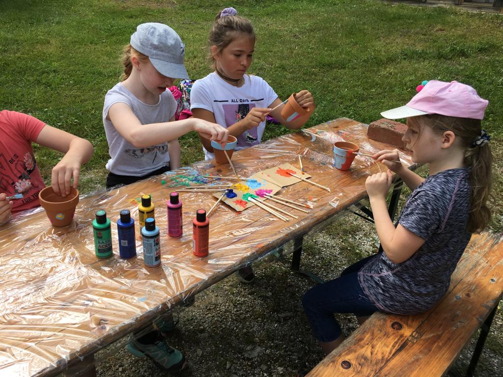 Bei der Schreinhofermühle, wo die 4. und letzte Station war, wurden Blumentöpfe bemalt, Steckerlbrot gegrillt und Laufspiele gemacht