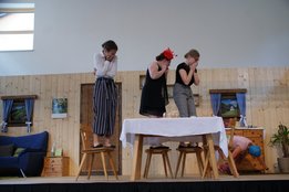 Der krönende Abschluss des Theaterwochenendes war die Sonntagnachmittags-Vorstellung. Im Anschluss bauten wir noch unsere Theaterbühne ab und blickten nochmal auf drei gelungen Aufführungen zurück. Natürlich besteht ein Theater nicht nur aus den Aufführungen, sondern auch aus den zahlreichen Proben. Hier möchten wir uns bei unserem Regisseur Michael Stelzer bedanken, welcher viel Zeit und Leidenschaft investiert hat. Abschließend bleibt uns nur noch zu sagen: Wir hoffen es hat euch gefallen – bis nächstes Jahr!
